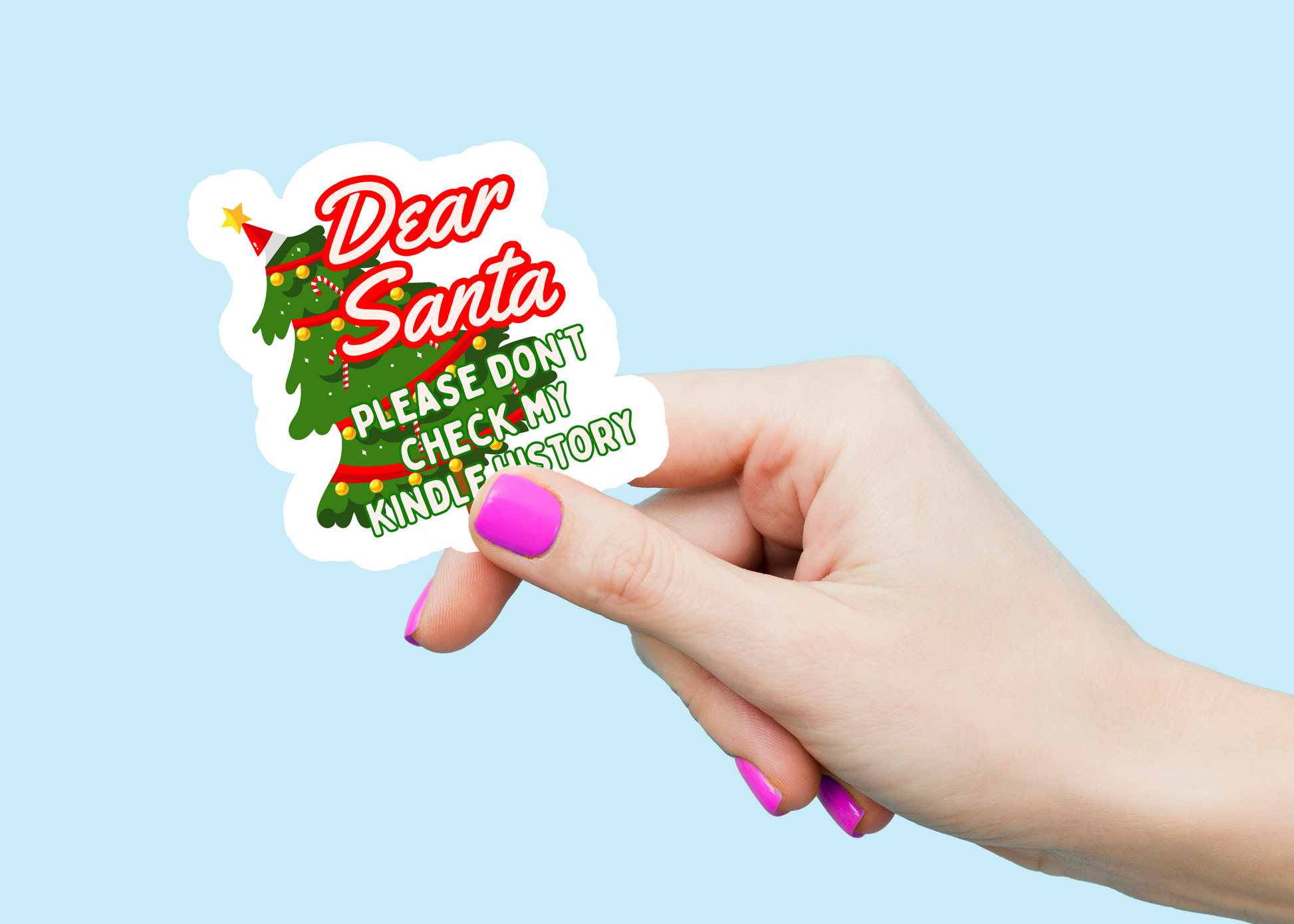 Tuck a little naughty into your nice with the "Dear Santa, Please Don't Check My Kindle History" sticker. This playful design is a nod to the secret stories that keep us up at night. Each sticker is made-to-order, ready to ship within 3-5 business days. © Jibbly 2025.