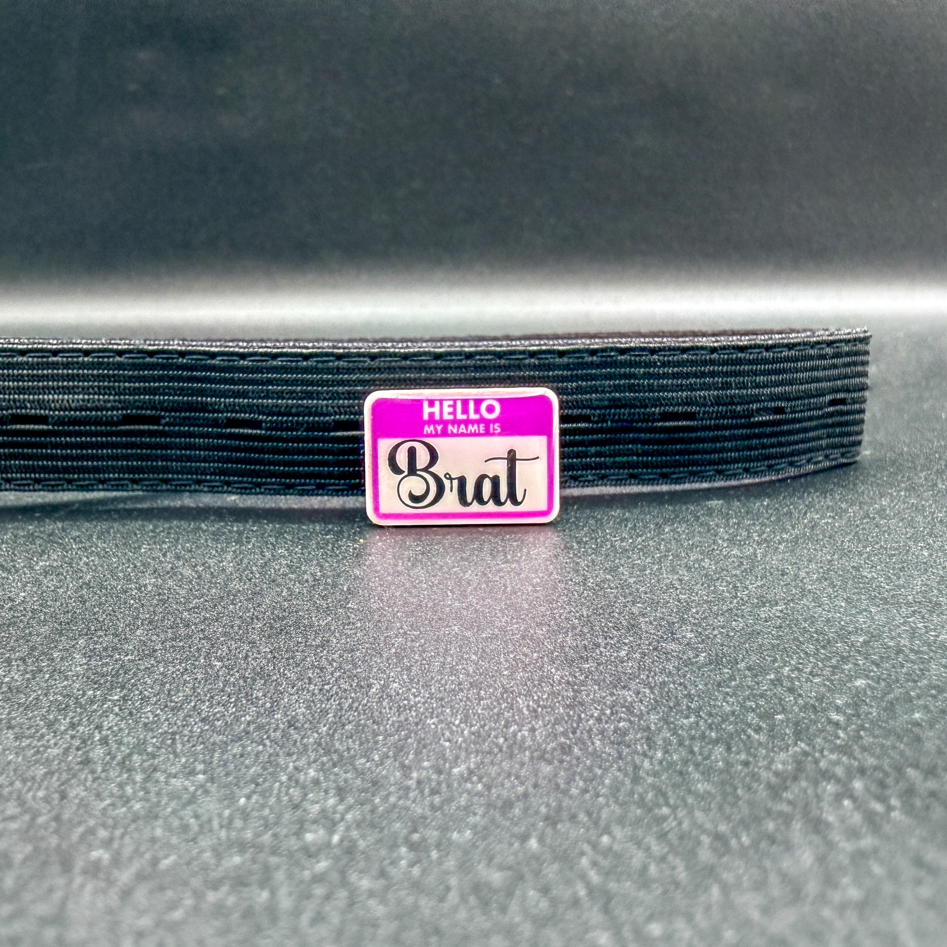 Showcase your identity with our Hello, My Name is Brat charm!