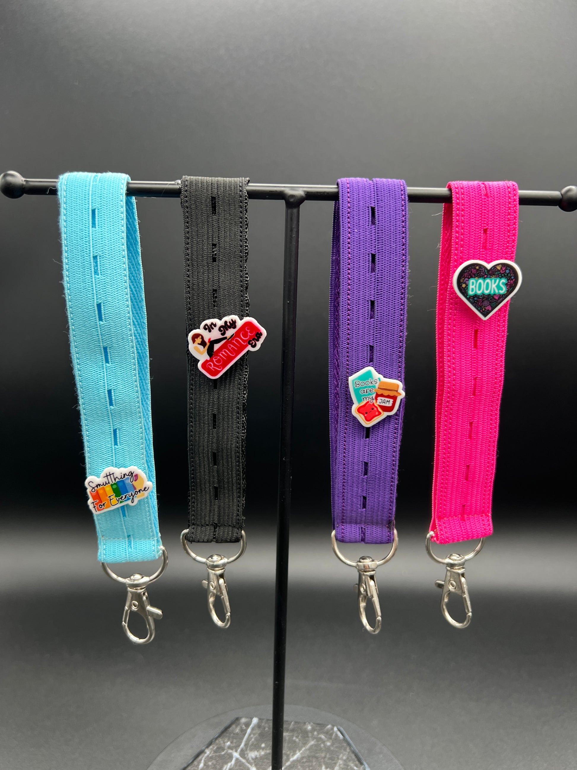 Chic Designs: Choose from a black, pink, purple, or light blue wristlet then add your favorite Jibbly that cater to your romance genre preferences. Whether you're into contemporary romance, paranormal love stories, or anything in between, decorate your wristlet according to your style.